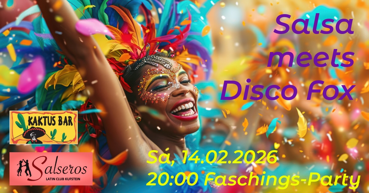 Samstag, 14. Feber 2026, 20:00 Salseros Salsa meets Discofox Faschings-Party in der Kaktus Bar 💃🕺.